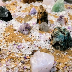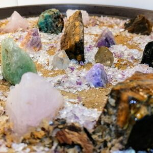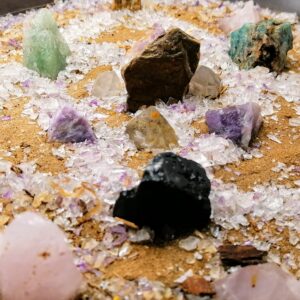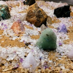 W skład generatora wchodzą głównie: Tygrysie oko, kwarc różowy, Awenturyn, Turmalin czarny, Turkus.