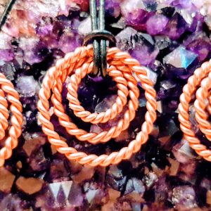 Miedziany wisiorek energetyczny z trzema pierścieniami tensorowymi o częstotliwościach odkrytych i zmierzonych przez Mariane Alves Soprano RA-MU, VIKING, ŚWIĘTY KONTYNENT